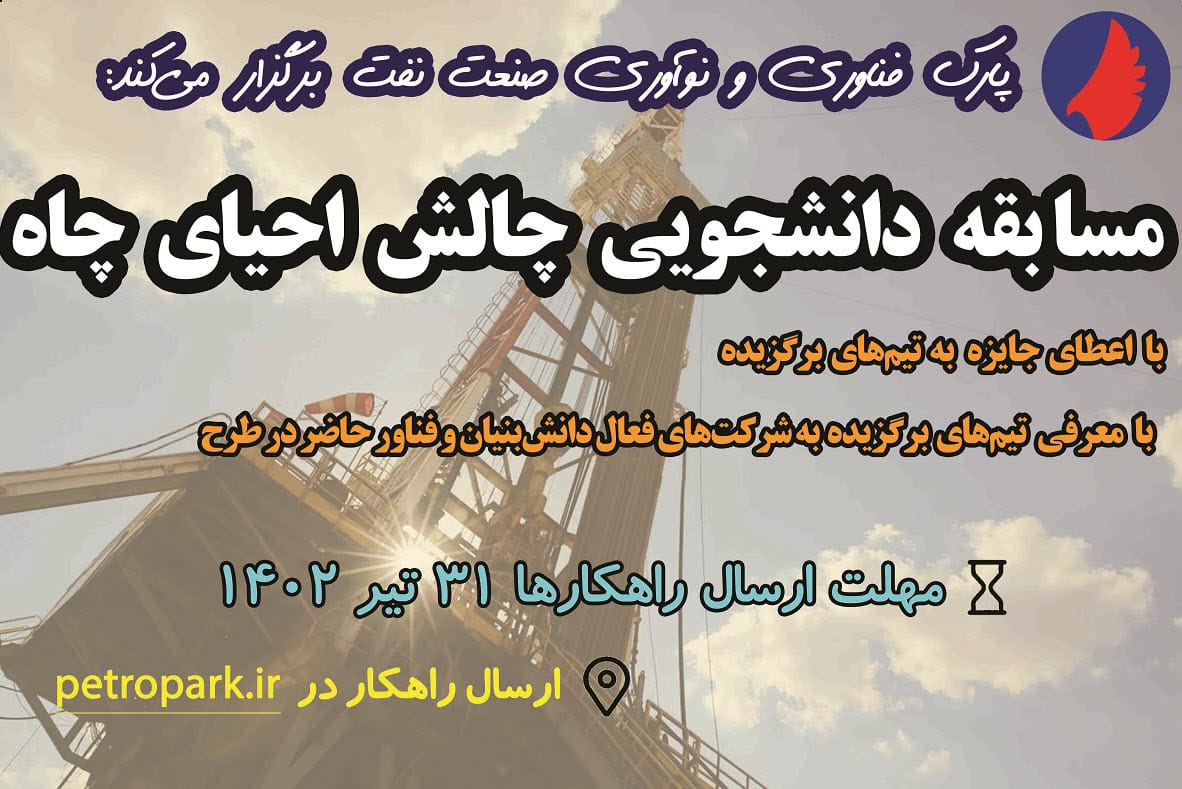 پارك فناوري و نوآوري نفت و گاز با مشاركت شركت ملي نفت ايران اقدام به برگزاري يك مسابقه دانشجويي چالش احياي چاه نموده است. اين مسابقه با هدف توسعه ذينفعانِ طرح احياي چاه‌هاي بسته و كم‌بازده نفتي كه يكي از بزرگ‌ترين طرح‌هاي دانش‌بنيان كل زيست‌بوم نوآوري كشور است برگزار مي‌شود تا ضمن آشنايي دانشجويان با ابعاد مختلف طرح به تعميق و كاربردي نمودن دانش ايشان بپردازد.